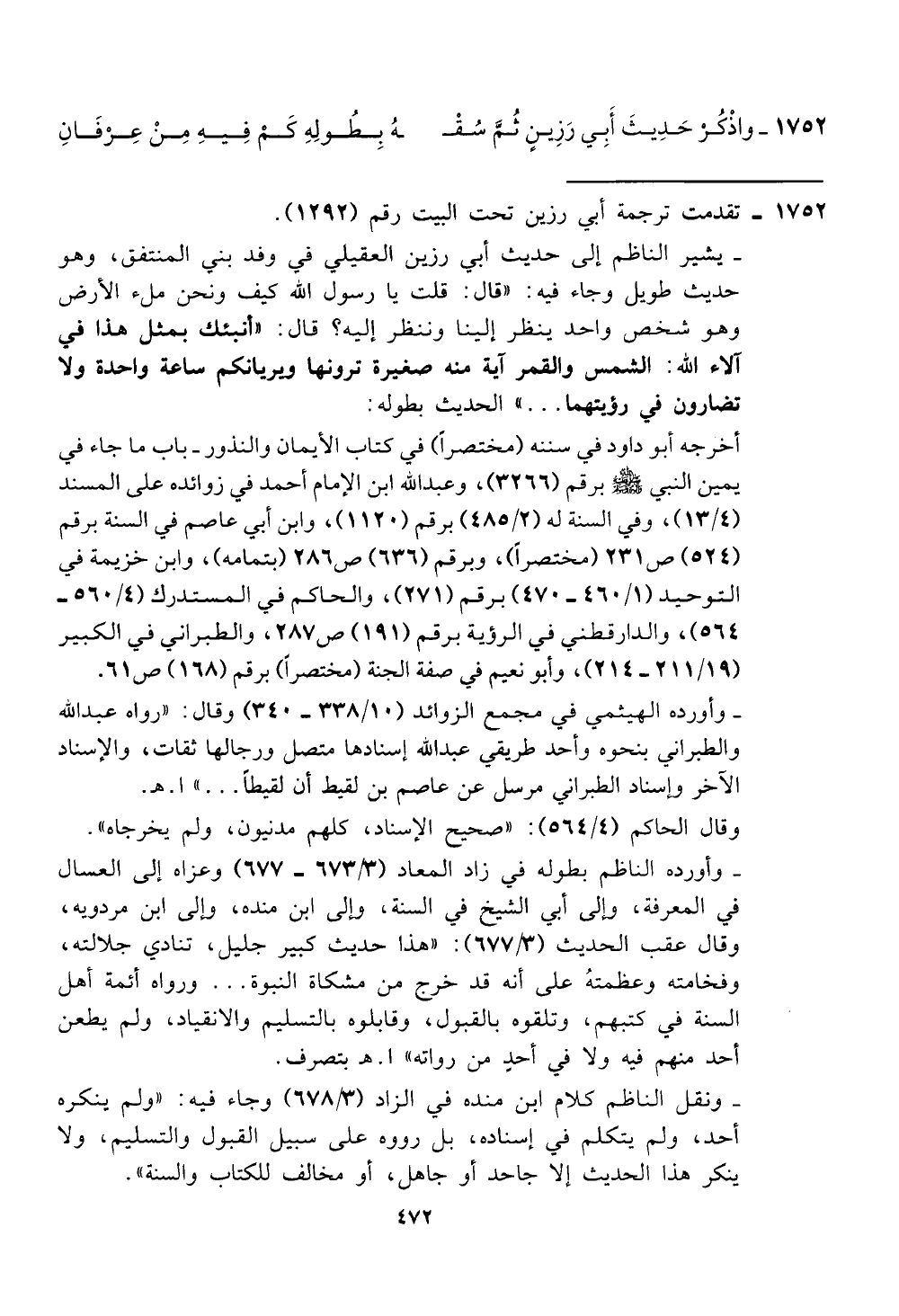 1752 - واذكر حديث ابي رزين ثئم سف، بطوله كئم فيه من عزفان