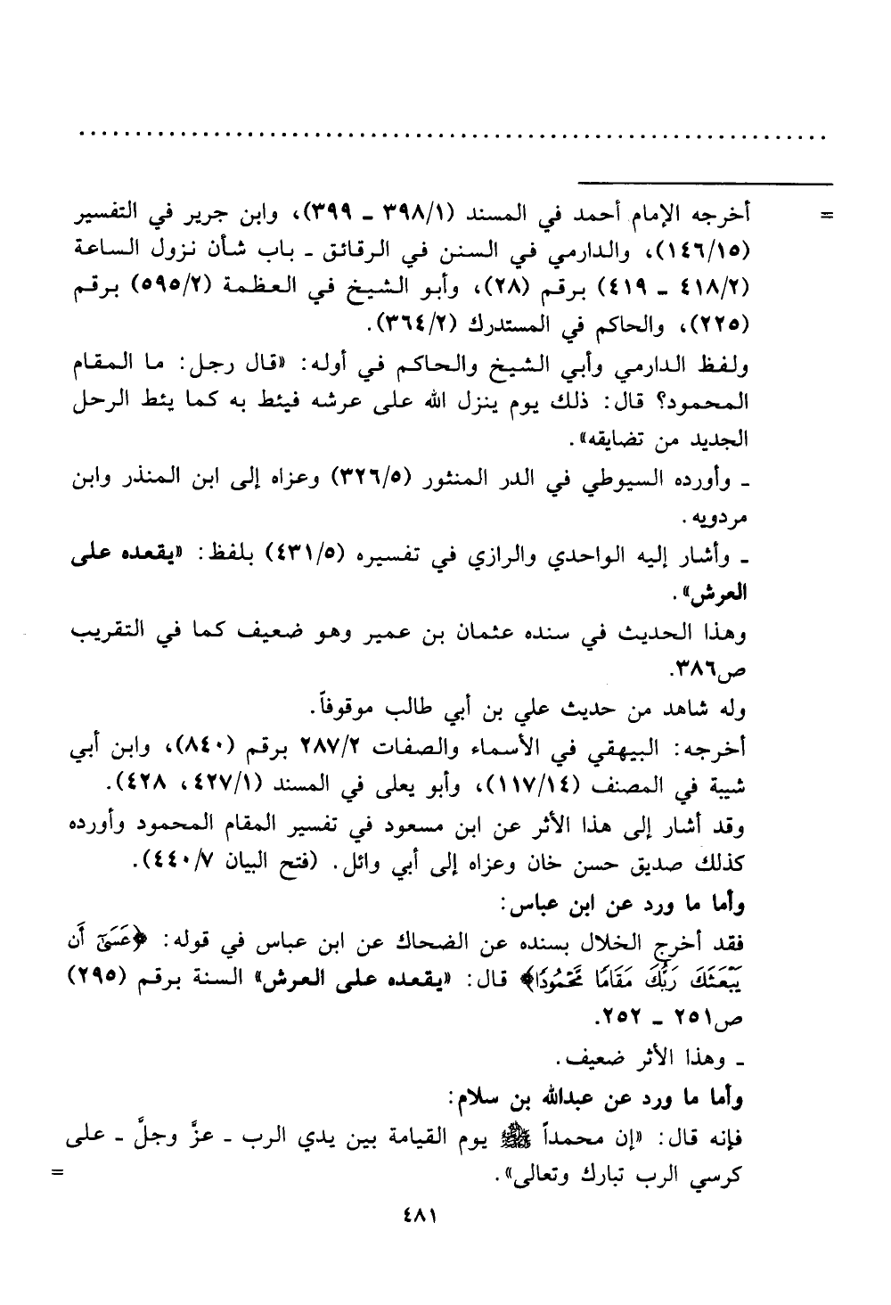 يبعثك رئبن مقاما تحمو، ا) قال: "يقعده على 1 لعرش" السنة برقم (295)