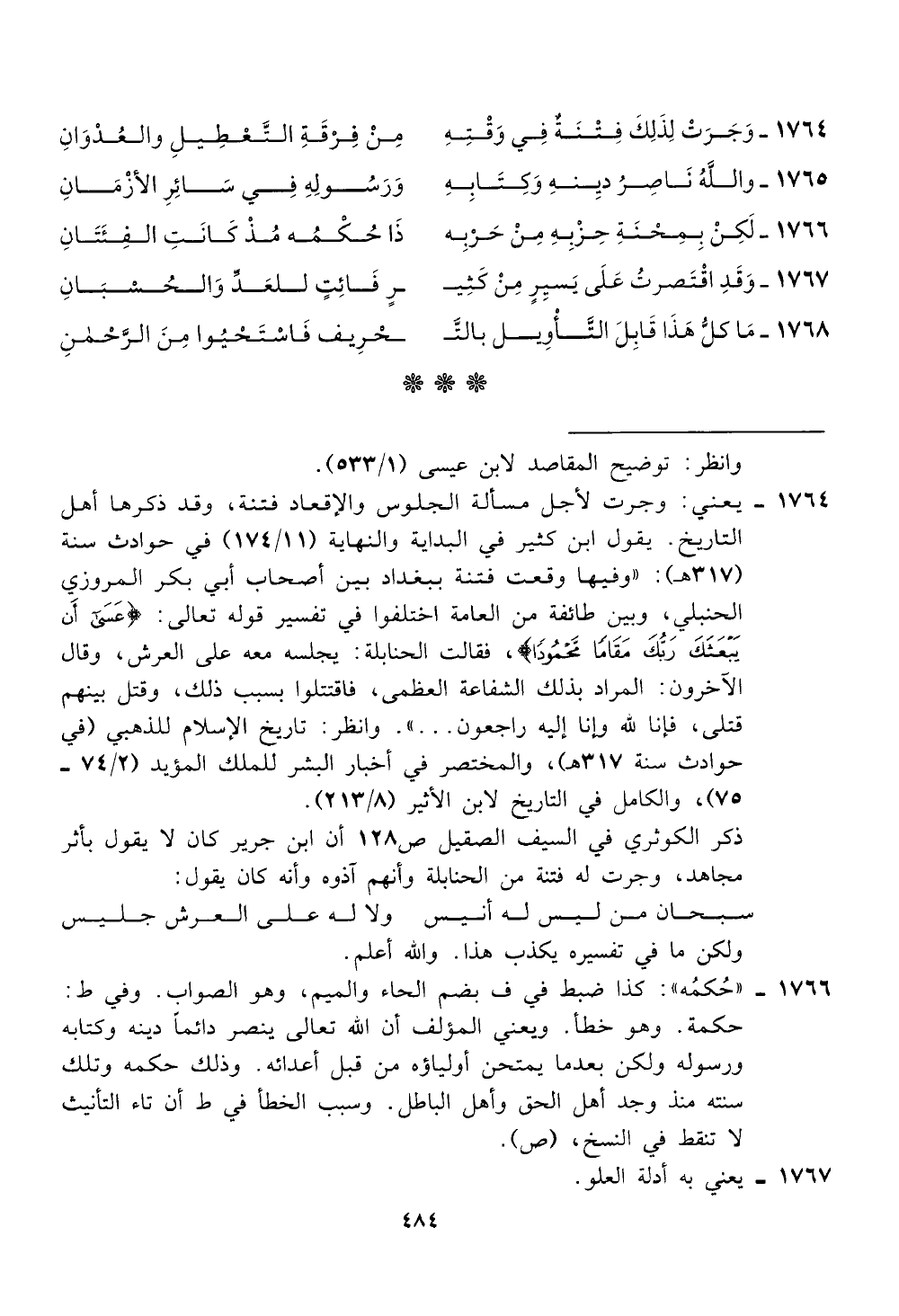 1766 - "حكمه": كذا ضبط في ف بضم الحاء والميم، وهو الصواب. وفي ط: