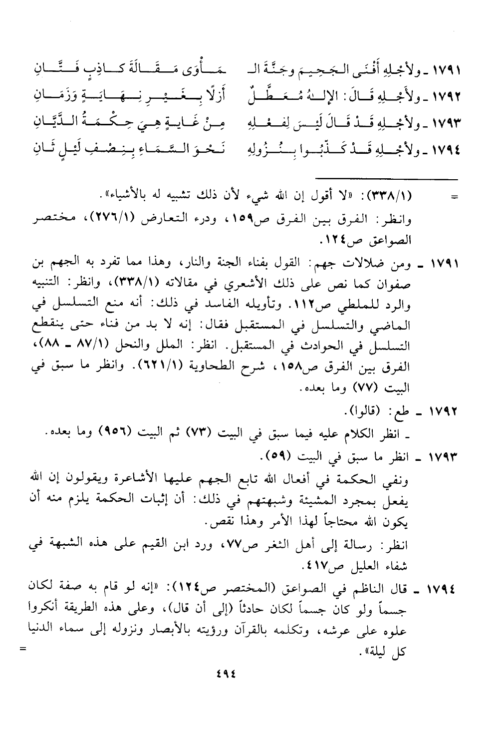 والرد للملطي ص 112. وتاويله الفاسد في ذلك: انه منع التسلسل! ي