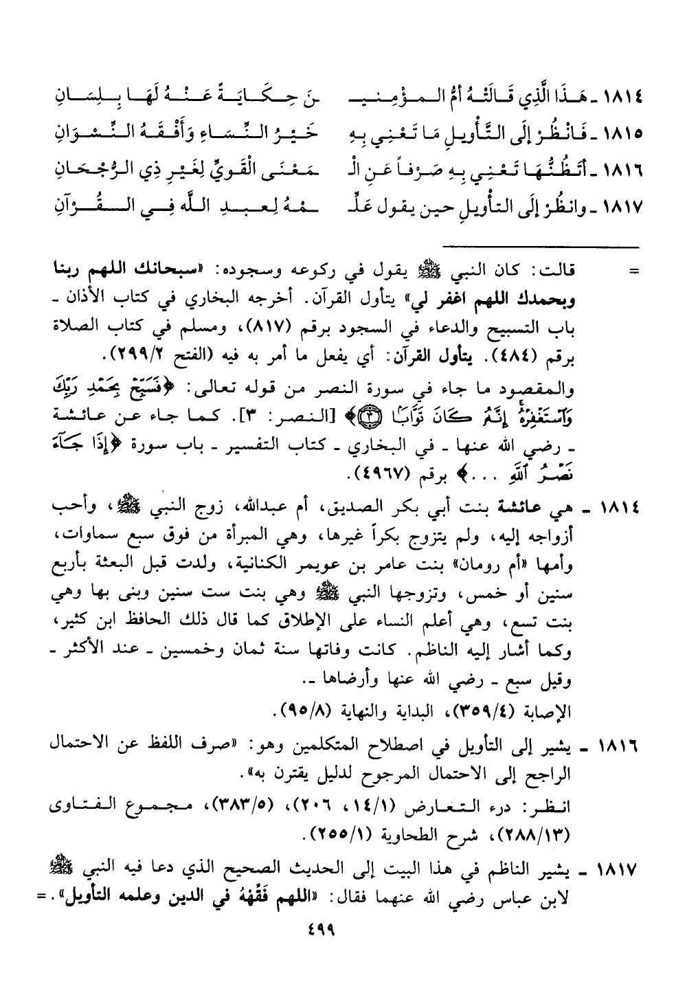 يشير الناظم في هذا البيت إلى الحديث الصحيح الذي دعا قيه النبي!