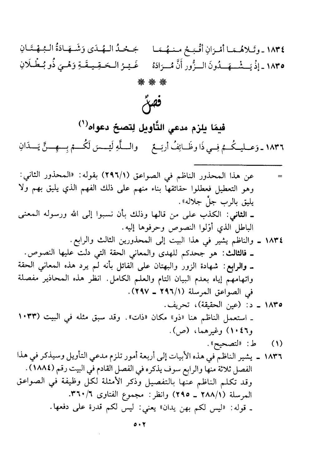 عن هذا المحذور الناظم في الصواعق (29611) بقوله: "المحذور الثاني: