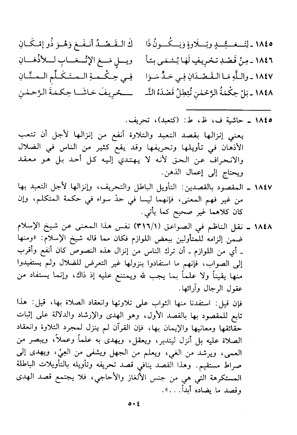 نقل الناظم في الصواعق (316/ 1) نفس هذا المعنى عن شيخ الإسلام