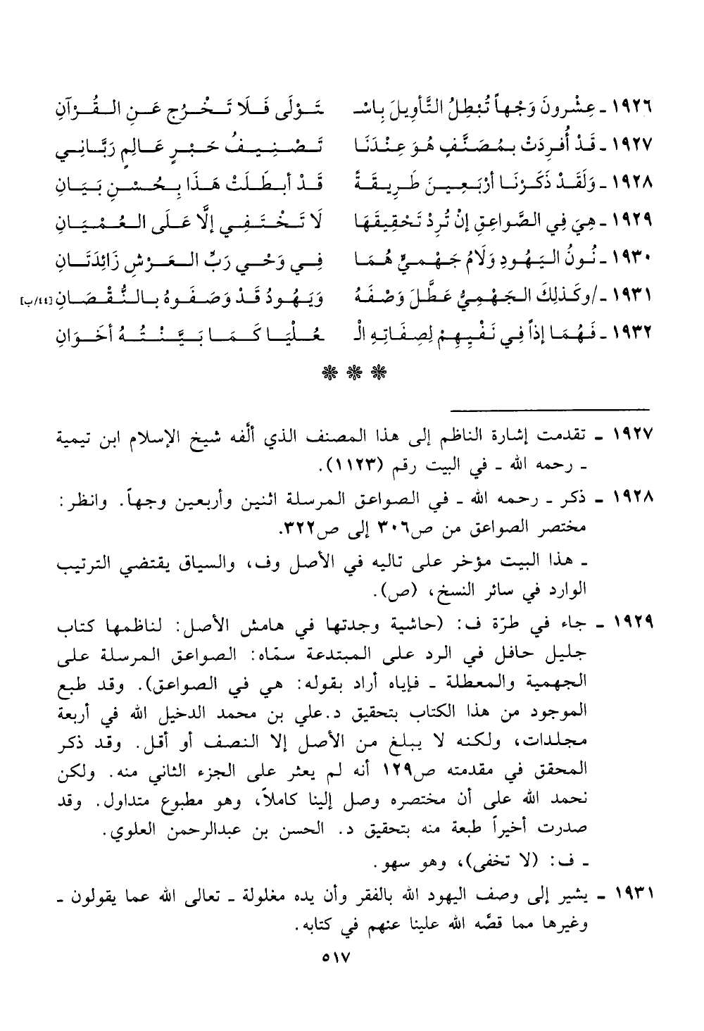 الجهمية والمعطلة - فإياه اراد بقوله: هي في الصواعق). وقد طبع