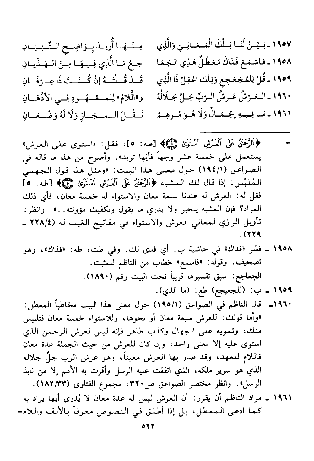 الصواعق (194/ 1) حول معنى هذا البيت: "ومثل هذا قول الجهمي