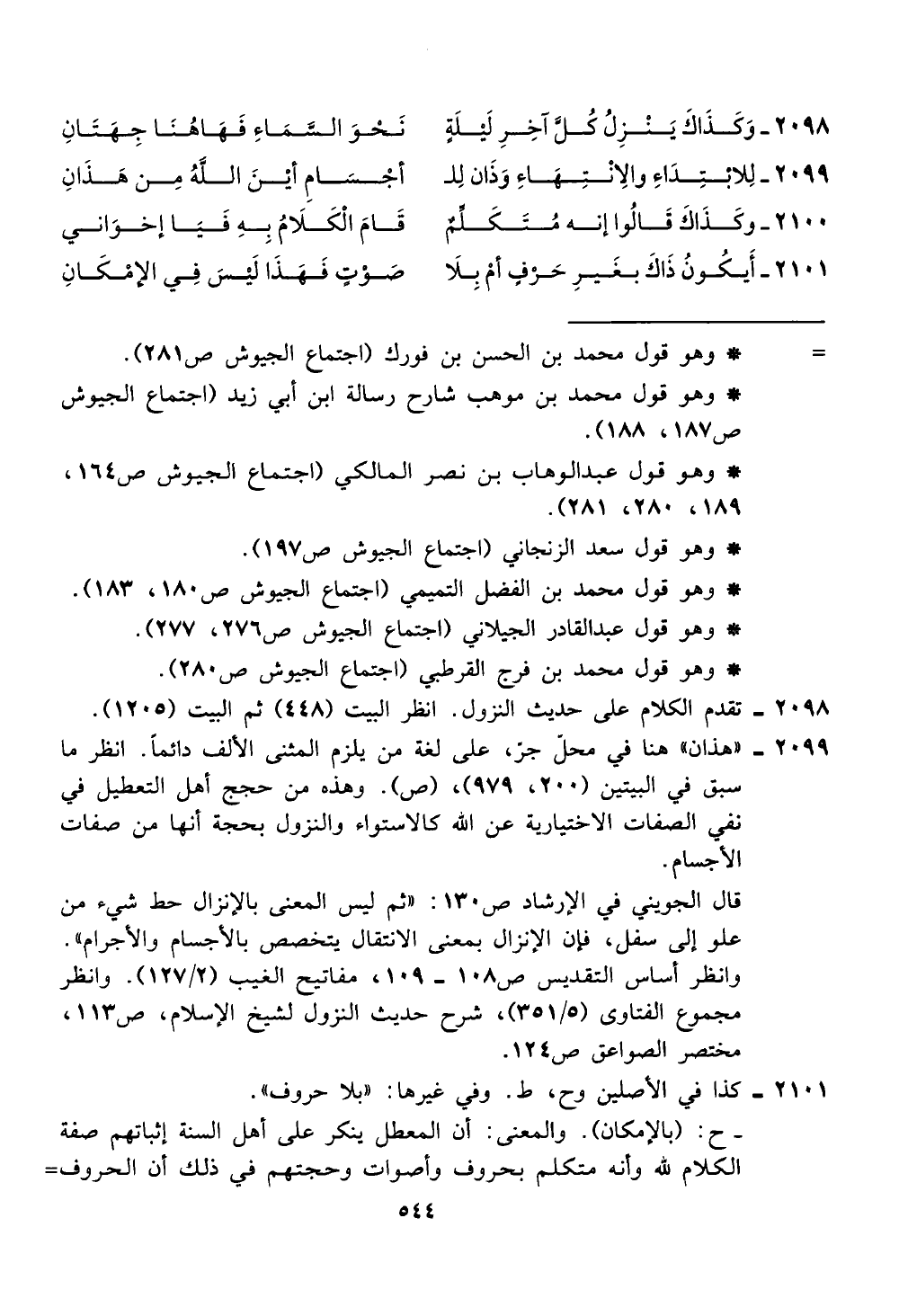 نفي الصفات الاختيارية عن الله كالاستواء والنزول بحجة أنها من صفات