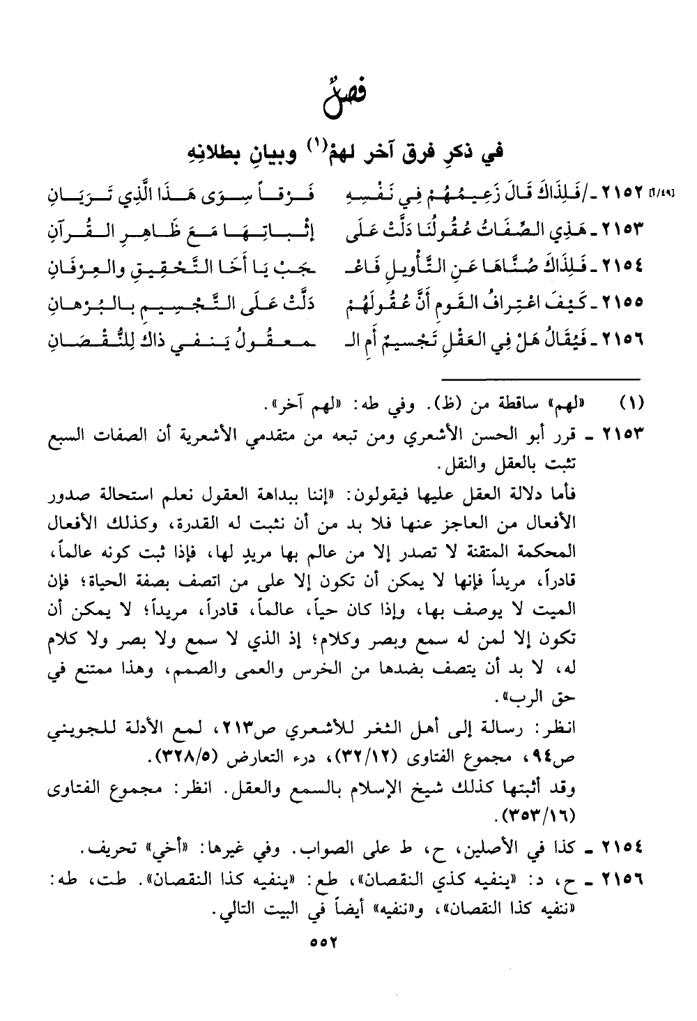 2156 - فيقال هل في العقل تجسيثم ام اد حعقول ينفي ذاك للنقصان