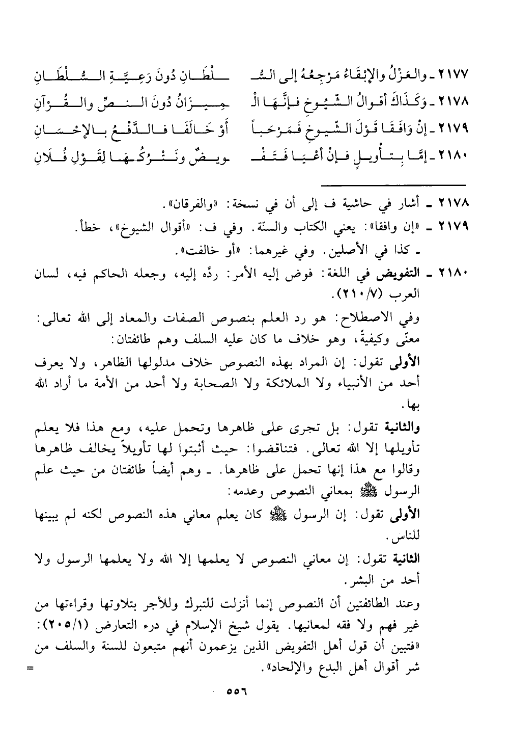 "فتبين أن قول أهل التفويض الذين يزعمون أنهم متبعون للسنة و لسلف من