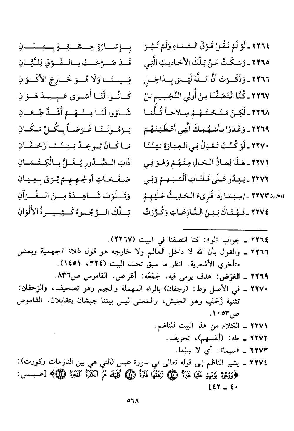 2274 - يشير الناظم الى قوله تعالى في سورة عيس (التي هي بين النازعات وكورت):