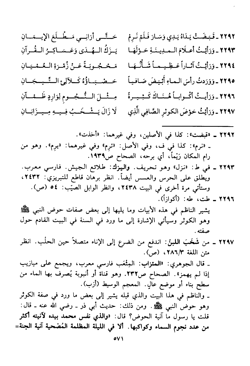 يشير الناظم في هذه الابيات وما يليها إلى بعض صفات حوض النبي!