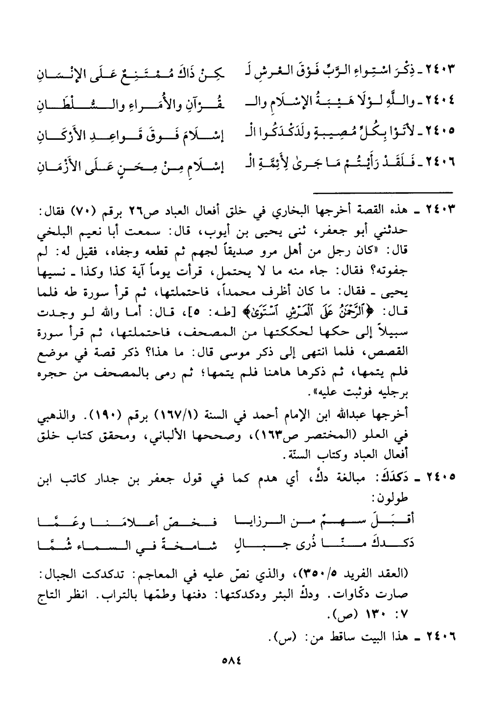 2403 - هذه القصة خرجها البخاري في خلق أفعال العباد ص 26 برقم (70) فقال: