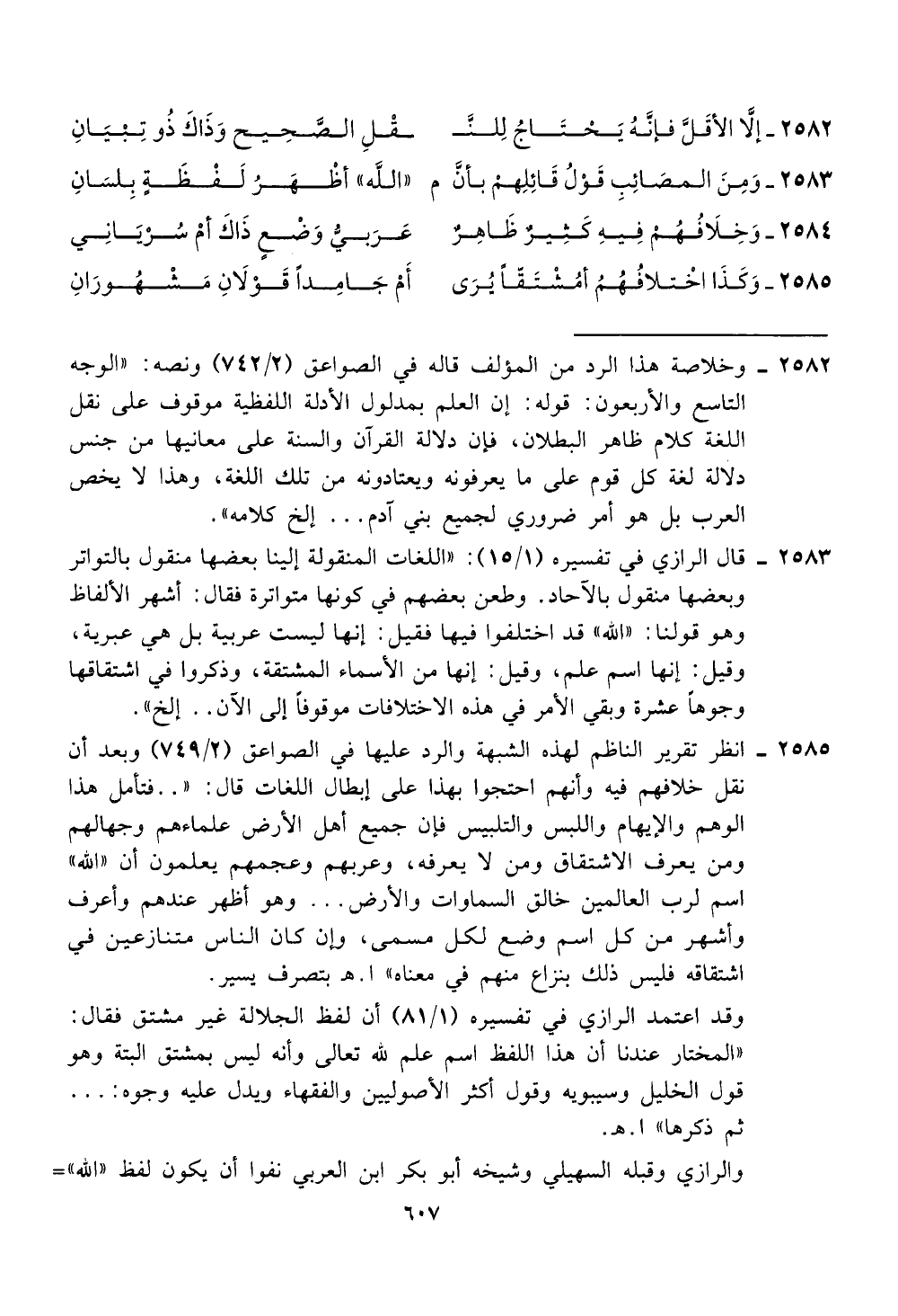 2583 - ومن المصائب قول قائلهم بالر م "الله " أظهر لفظة بلسان