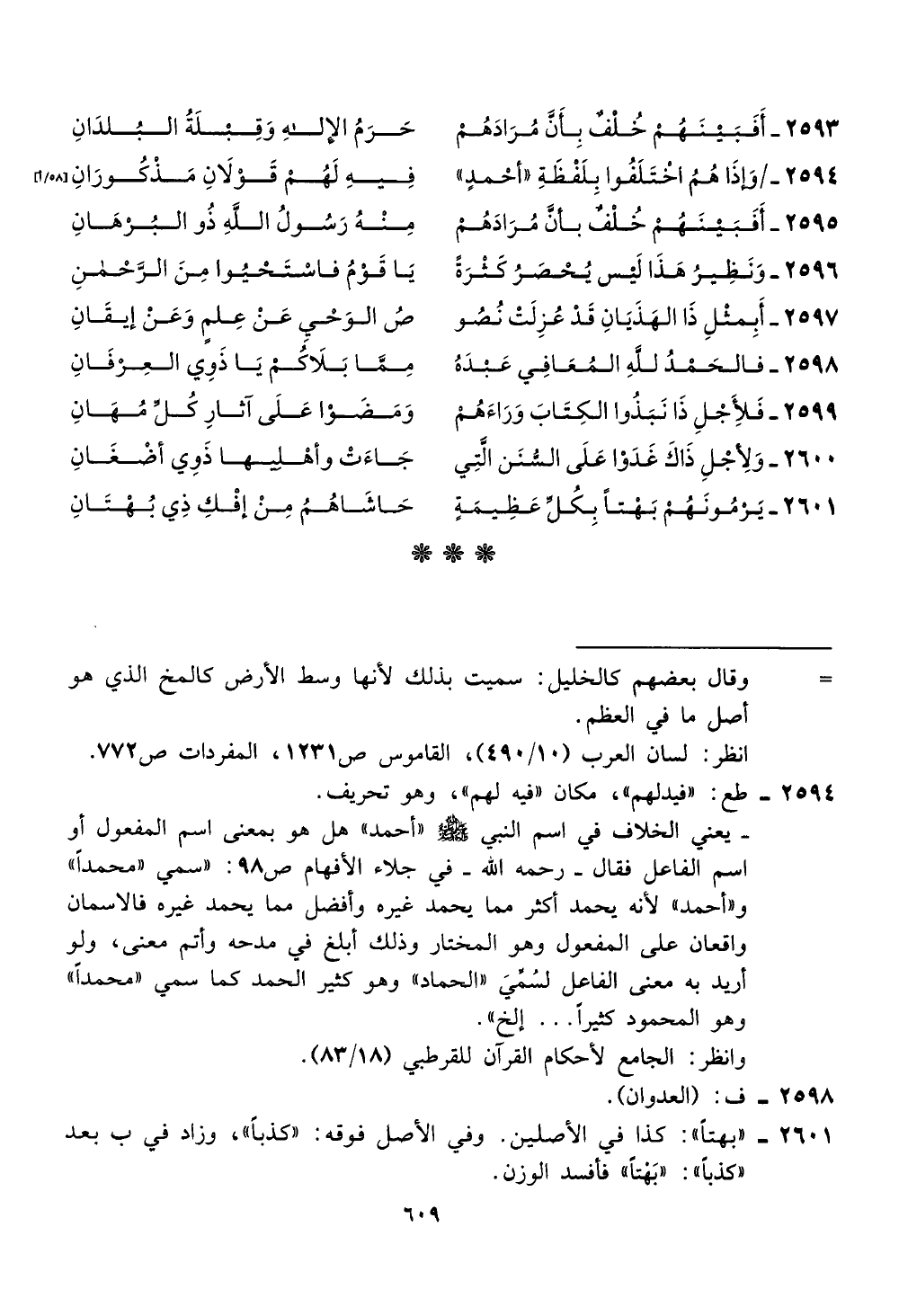 2594 - طع: "فيدلهم"، مكان "فيه لهم"، وهو تحريف.