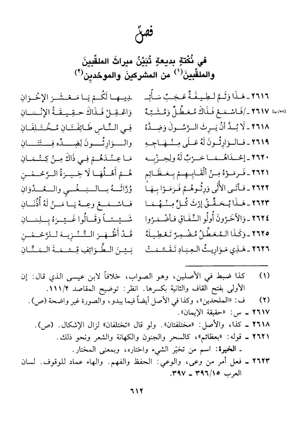 هذي مواريث العباد تقسصت بئن الطوائف قشمة المنان