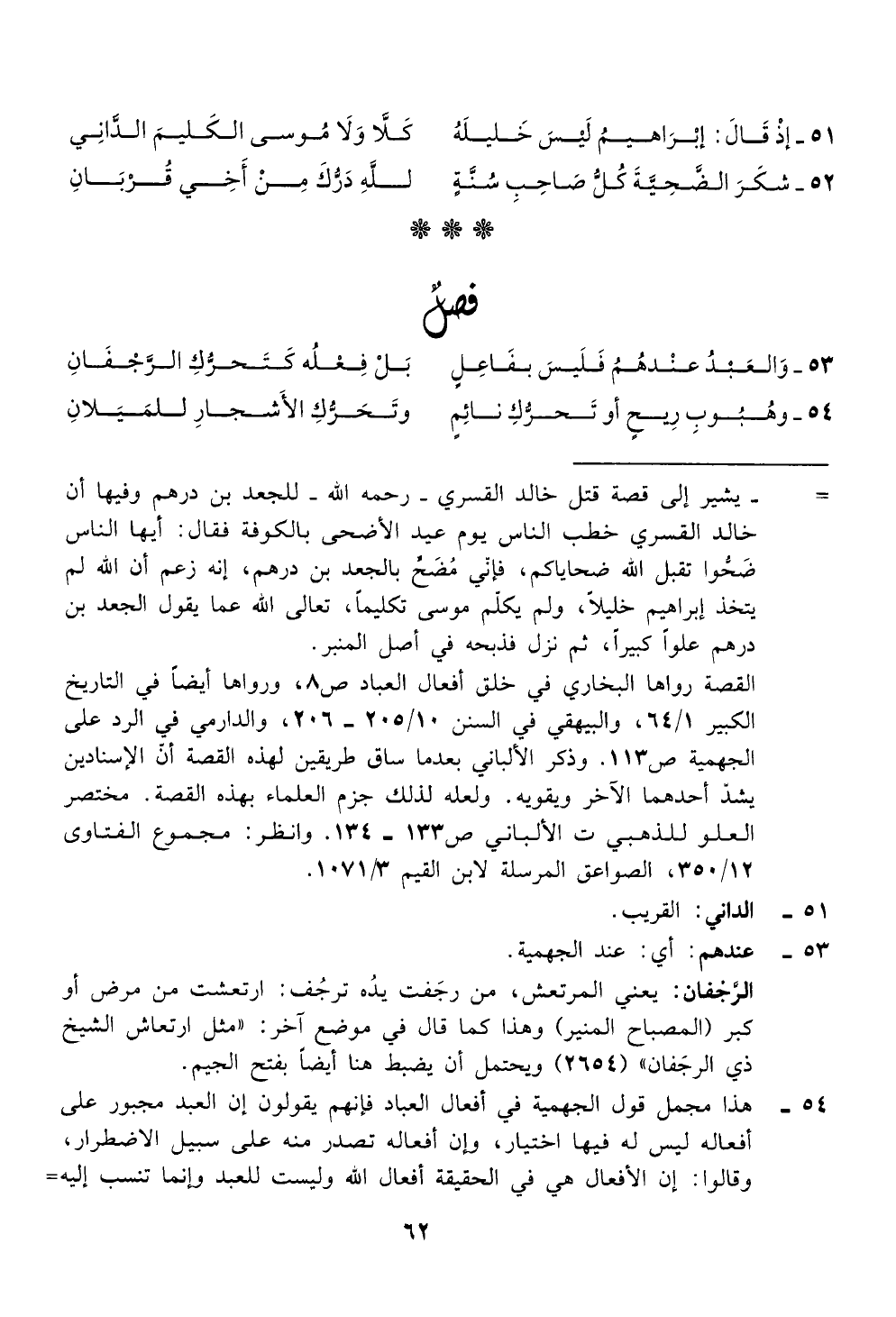 - يشير إلى قصة قتل خالد القسري - رحمه الله - للجعد بن درهم وفيها ا ن