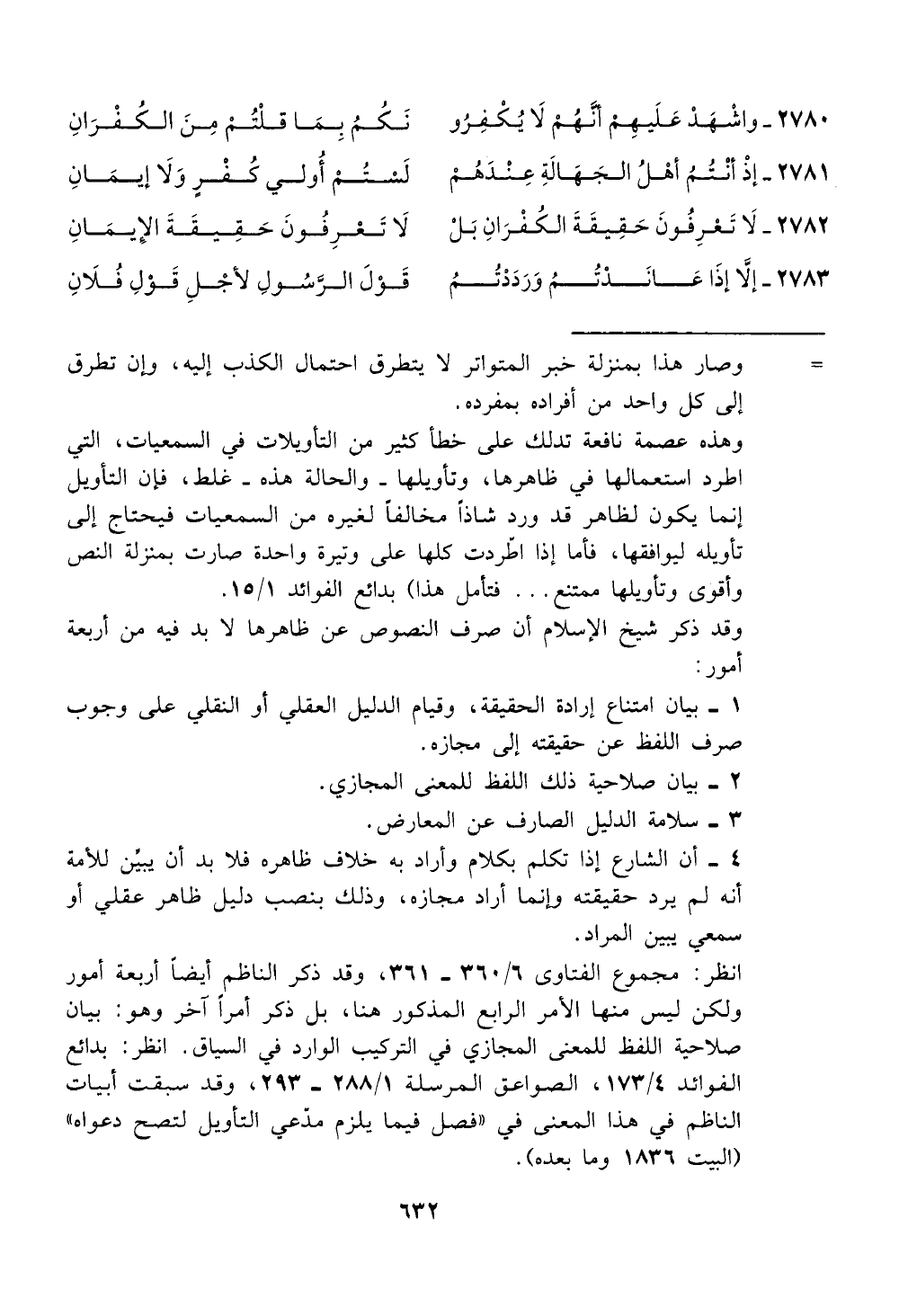 وهذه عصمة نافعة تدلك على خطا كثير من التاويلات في السمعيات، التي