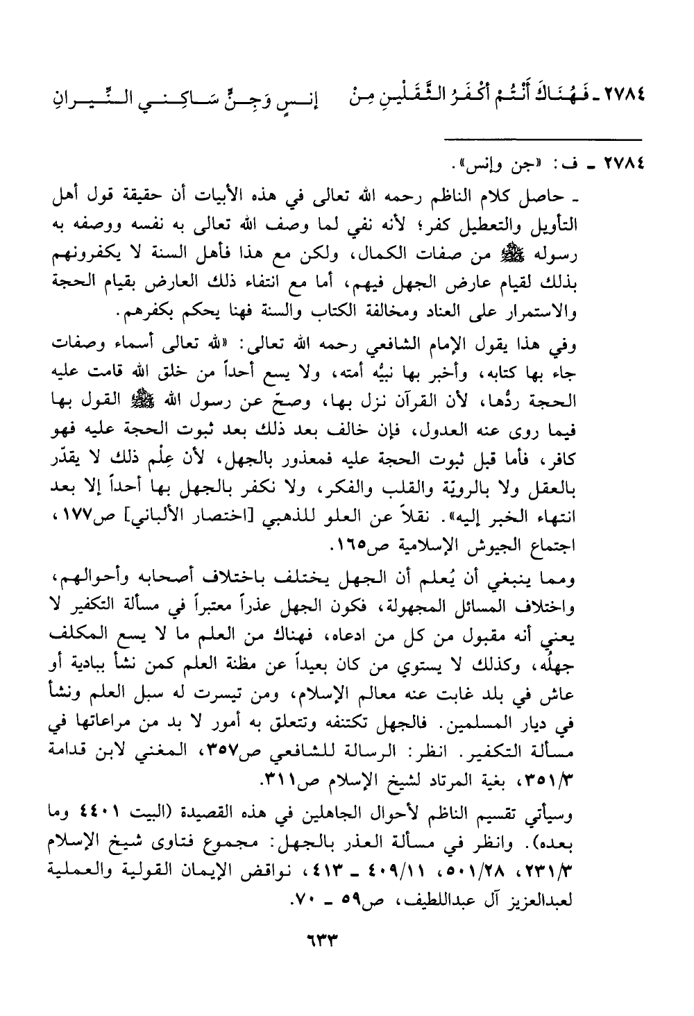 وسيإتي تقسيم الناظم لاحوال الجاهلين في هذه القصيدة (البيت 4401 وما