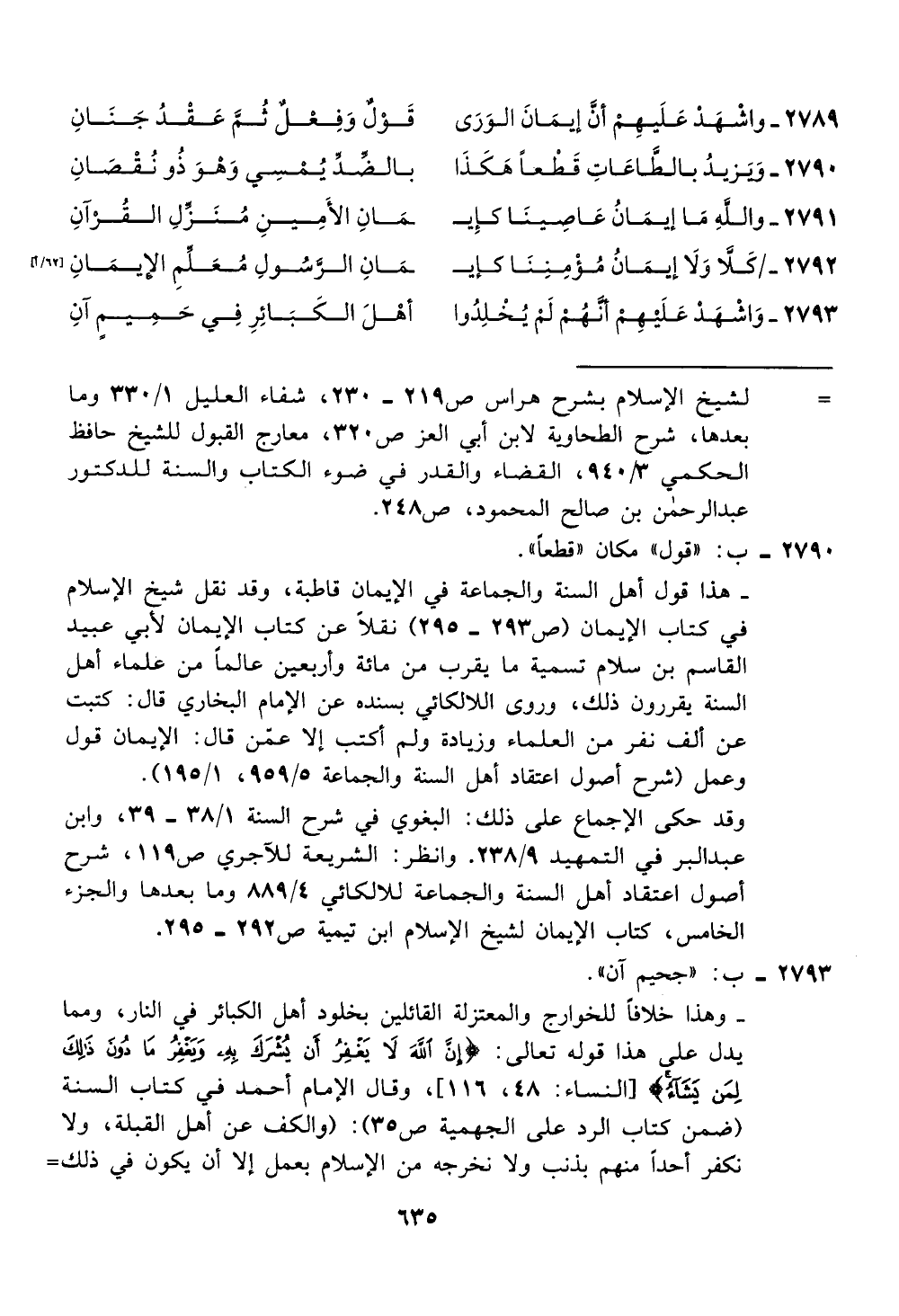 بعدها، شرح الطحاوية لابن أبي العز ص 320، معارج القبول للشيخ حافط