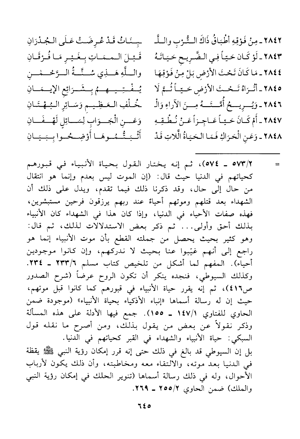 ص 416)، ثم إنه يقرر حياة الانبياء في قبورهم كما كانوا قبل موتهم،