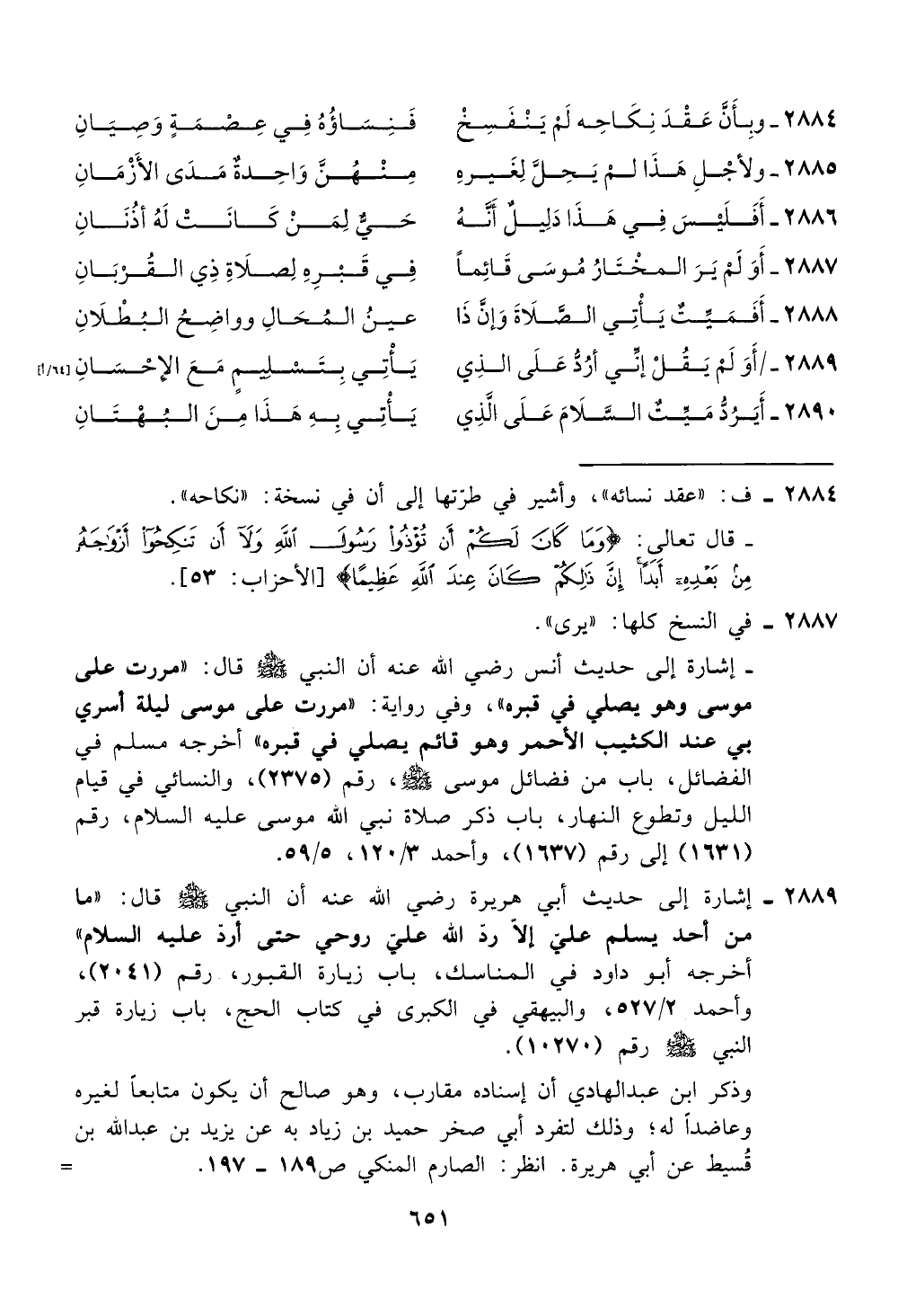 موسى وهو يصلي في قبره "، وفي رواية: "مررت على موسى ليلة اسري