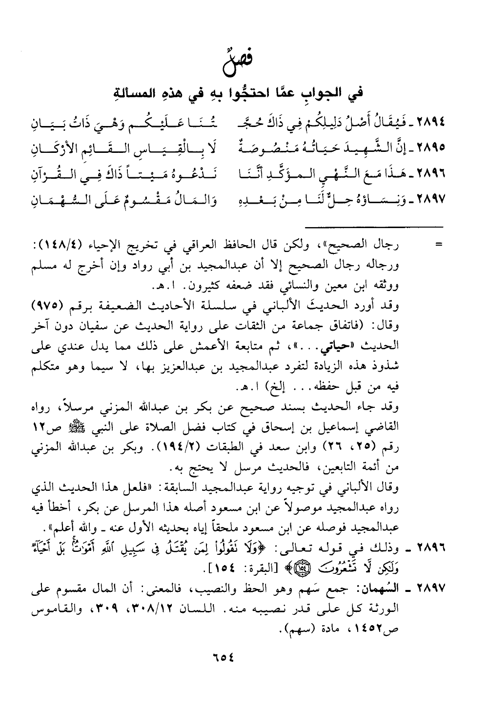 2895 - إن الشهيد حياته منصوصة لا بالقياس القائم الاركان