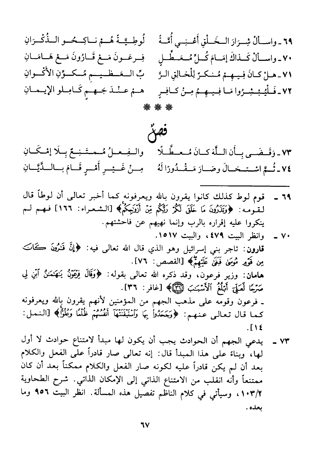 70 - و [سأل كذاك إمام كل معطل فرعون مع قارون مع هامان