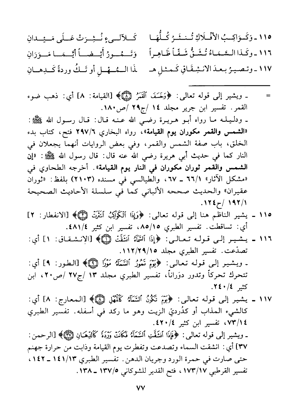 117 - يشير إلى قوله تعالى: <يؤم تكون السماء كاتمقل *> [المعارج: 8] ي: