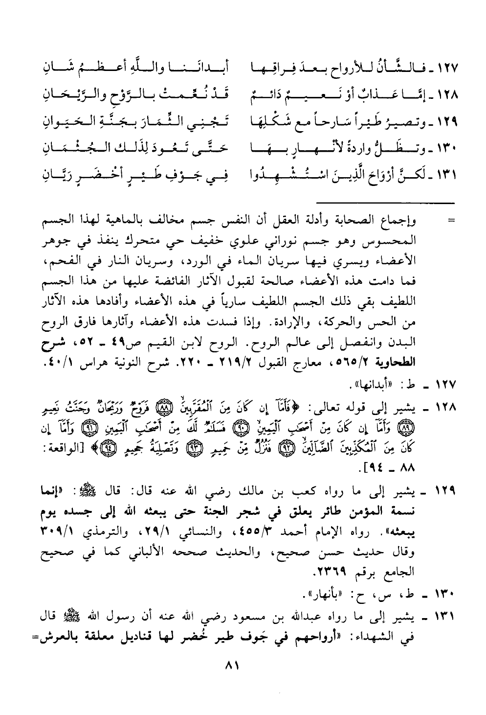 131 - يشير إلى ما رواه عبدالله بن مسعود رضي الله عنه ان رسول الله! د قال