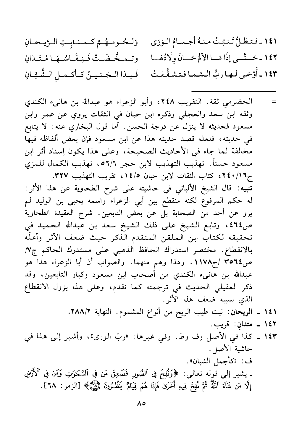 تنبيه: قال الشيخ الالباني في حاشيته على شرح الطحاوية عن هذا الاثر: