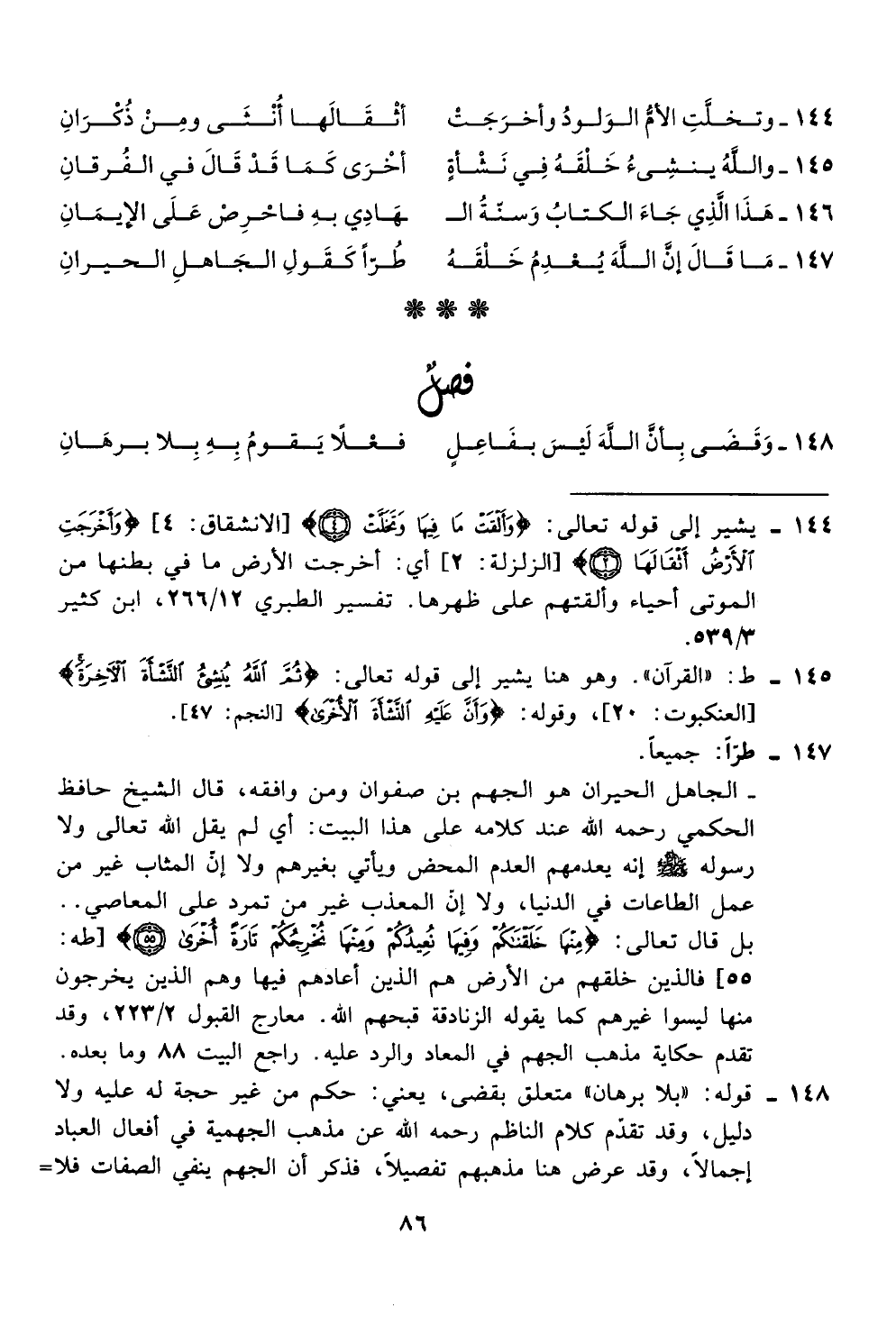 147 - ما قال إن الله يعدم خلقه طزا كقول الجاهل الحيران