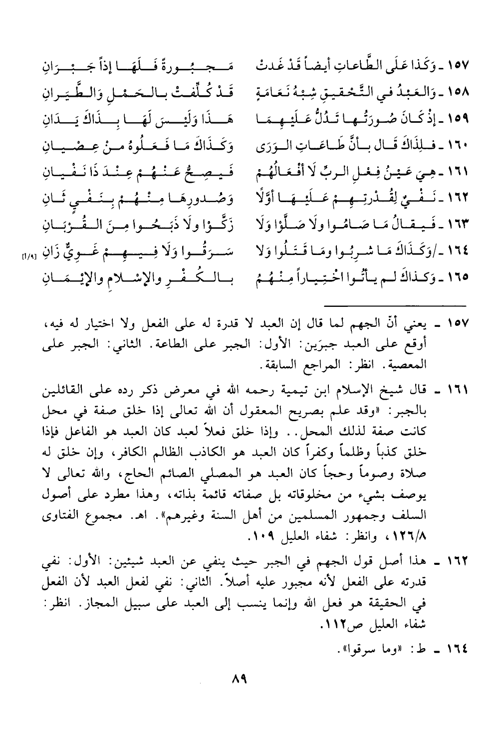 بالجبر: "وقد علم بصريج المعقول أن الله تعالى إذا خلق صفة في محل