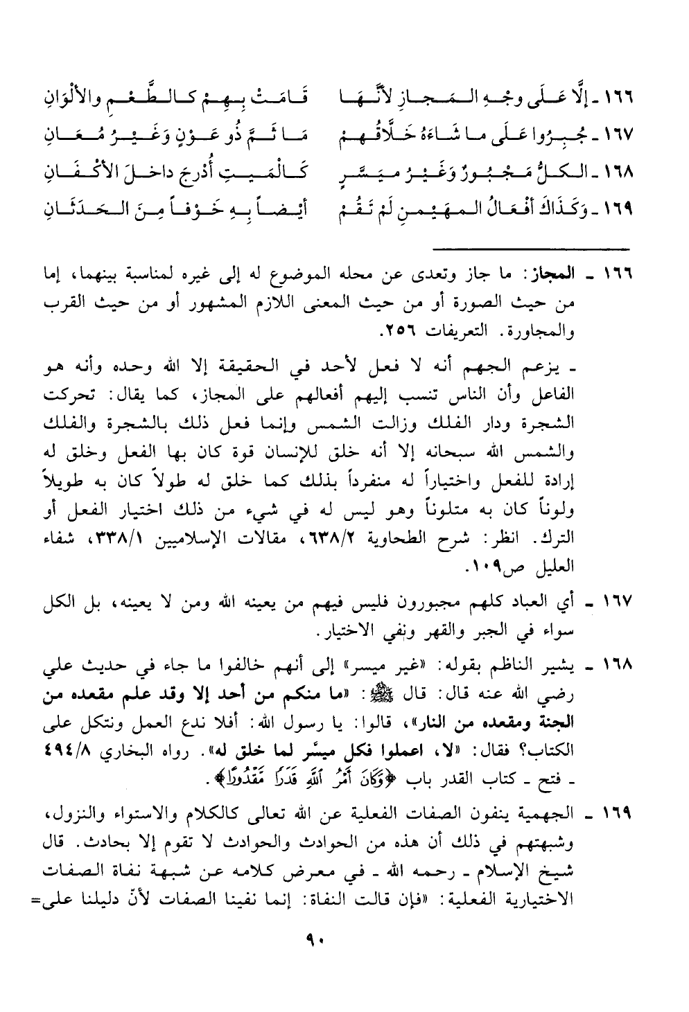 الاختيارية الفعلية: "فإن قالت النفاة: إنما نفينا الصفات لان دليلنا على=