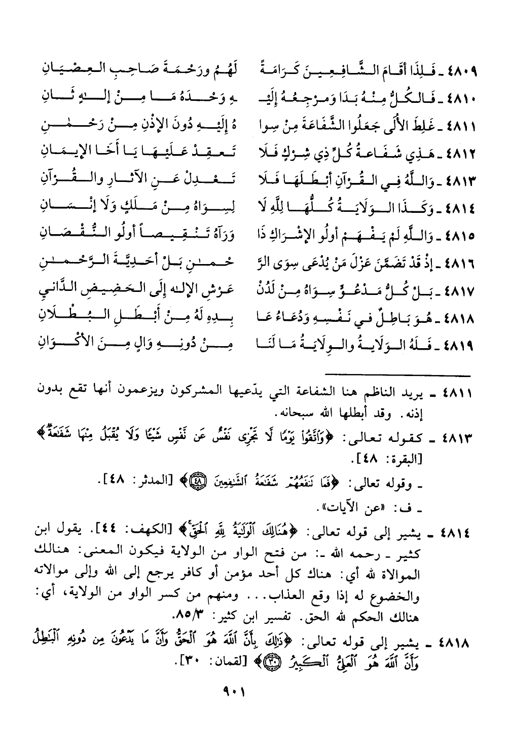 4811 - يريد الناظم هنا 1 لشفاعة التي يذعيها المشركون ويزعمون انها تقع بدون