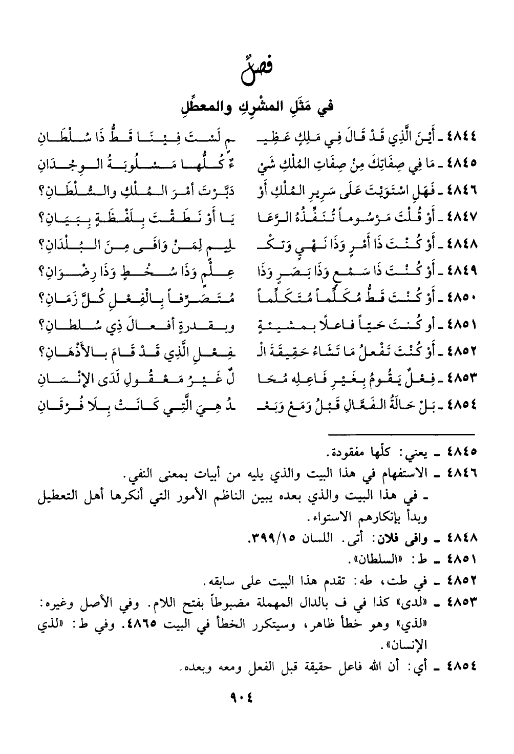 - في هذا البيت والذي بعده يبين الناظم الامور التي أنكرها اهل التعطيل