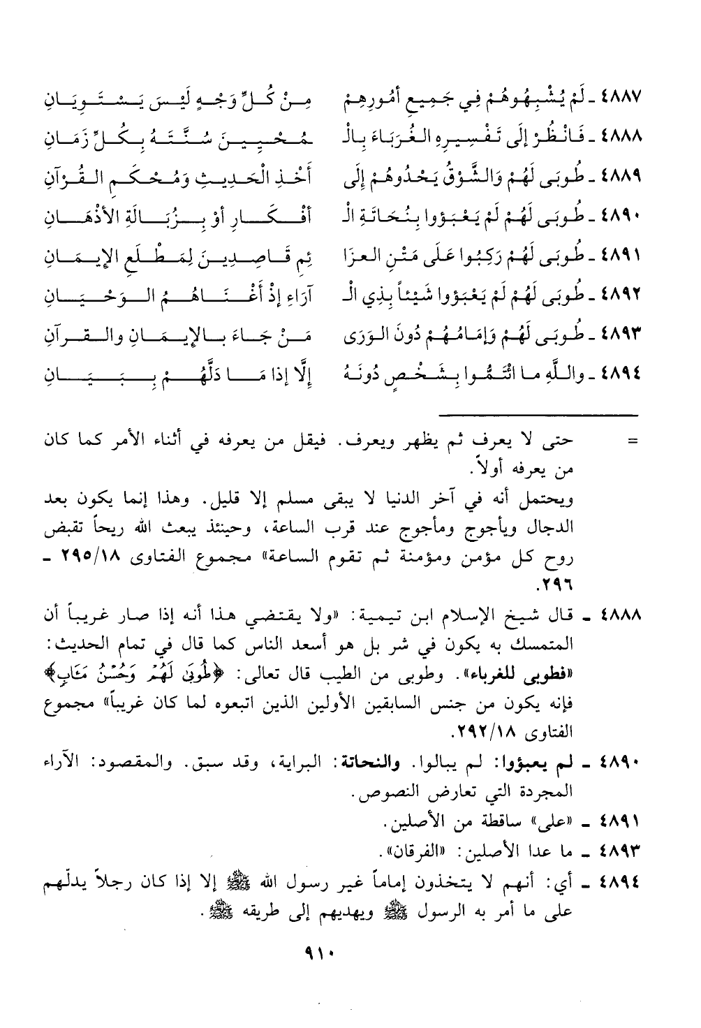 "فطوبى للغرباء". وطوبى من الطيب قال تعالى: <طوب لهم وح! ن ئاب)
