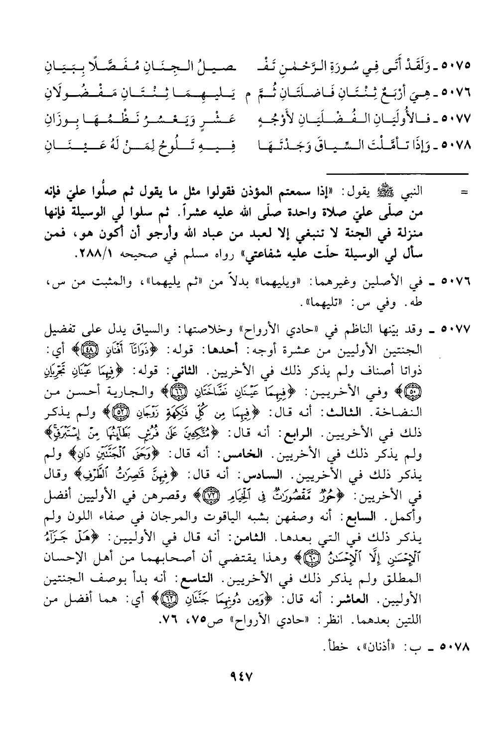 5077 - وقد بينها الناظم في "حادي الأرواح " وخلاصتها: والسياق يدل على تفضيل