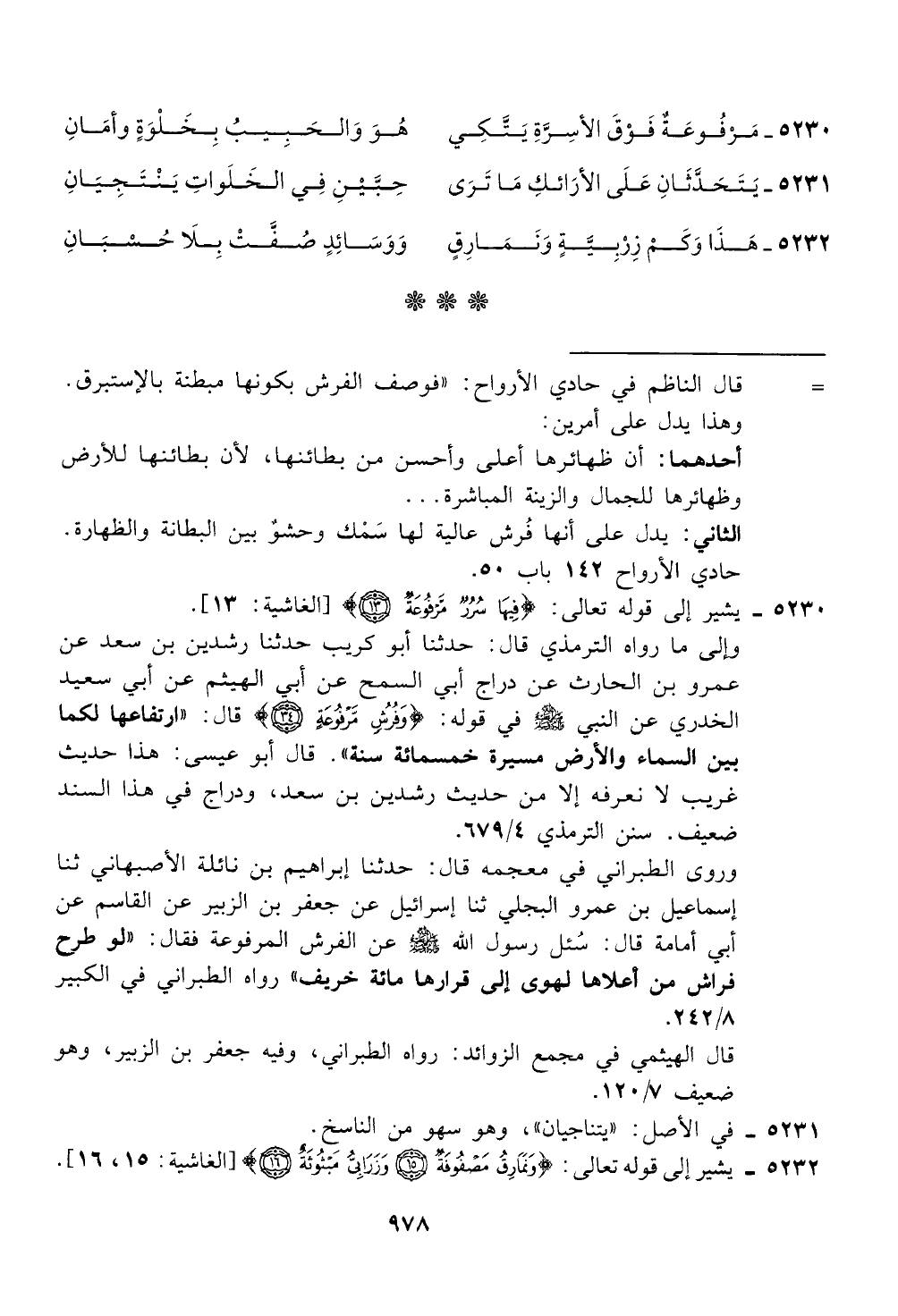 5230 - يشير إلى قوله تعالى: <فيها سرر مزدؤعة! > [الغاشية: 13].