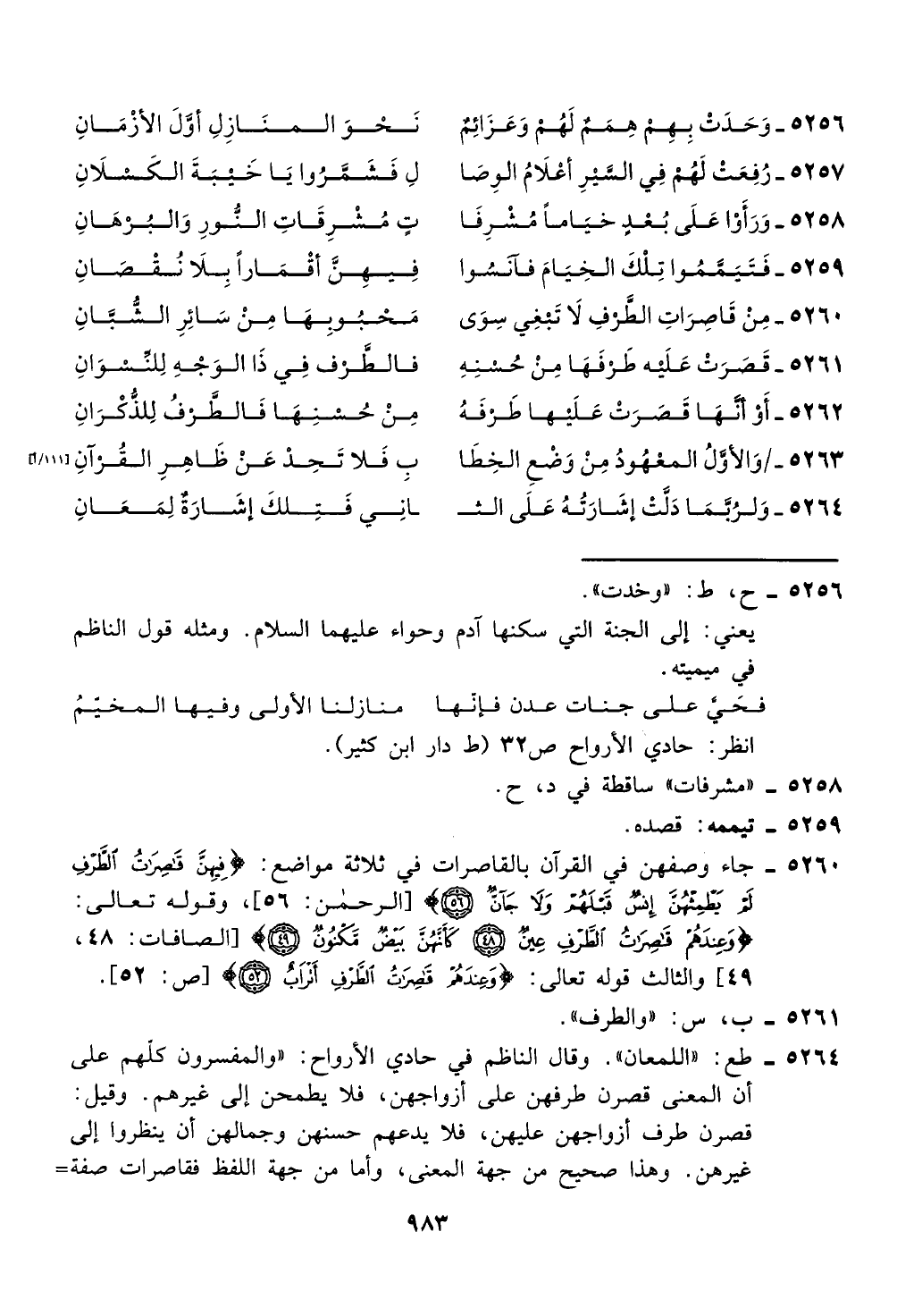 49] والثالث قوله تعالى: <وعندهر قضرت الظرت ألراب *> [ص: 52] ه