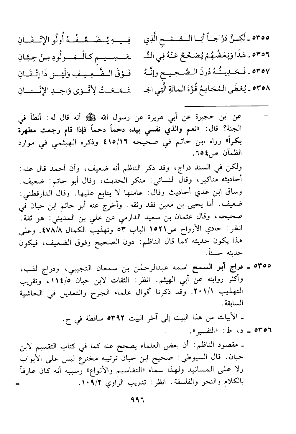 حبان. قال السيوطي: صحيح ابن حبان ترتيبه مخترع ليس على الابواب