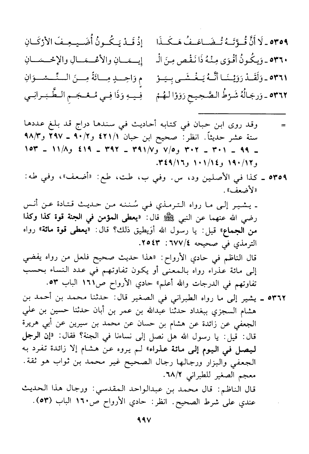 قال الناظم في حادي الارو ح: "هذا حديث صحيح فلعل من رواه يفضي