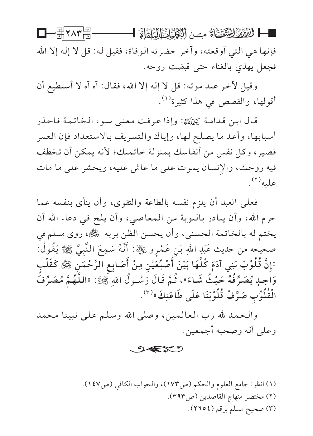 (¬١) انظر: جامع العلوم والحكم (ص: ١٧٣)، والجواب الكافي (ص: ١٤٧).