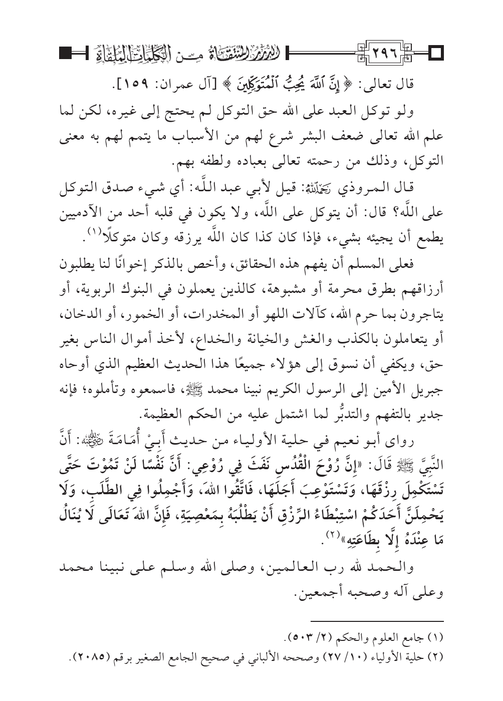 (¬٢) حلية الأولياء (١٠/ ٢٧) وصححه الألباني في صحيح الجامع الصغير برقم (٢٠٨٥).