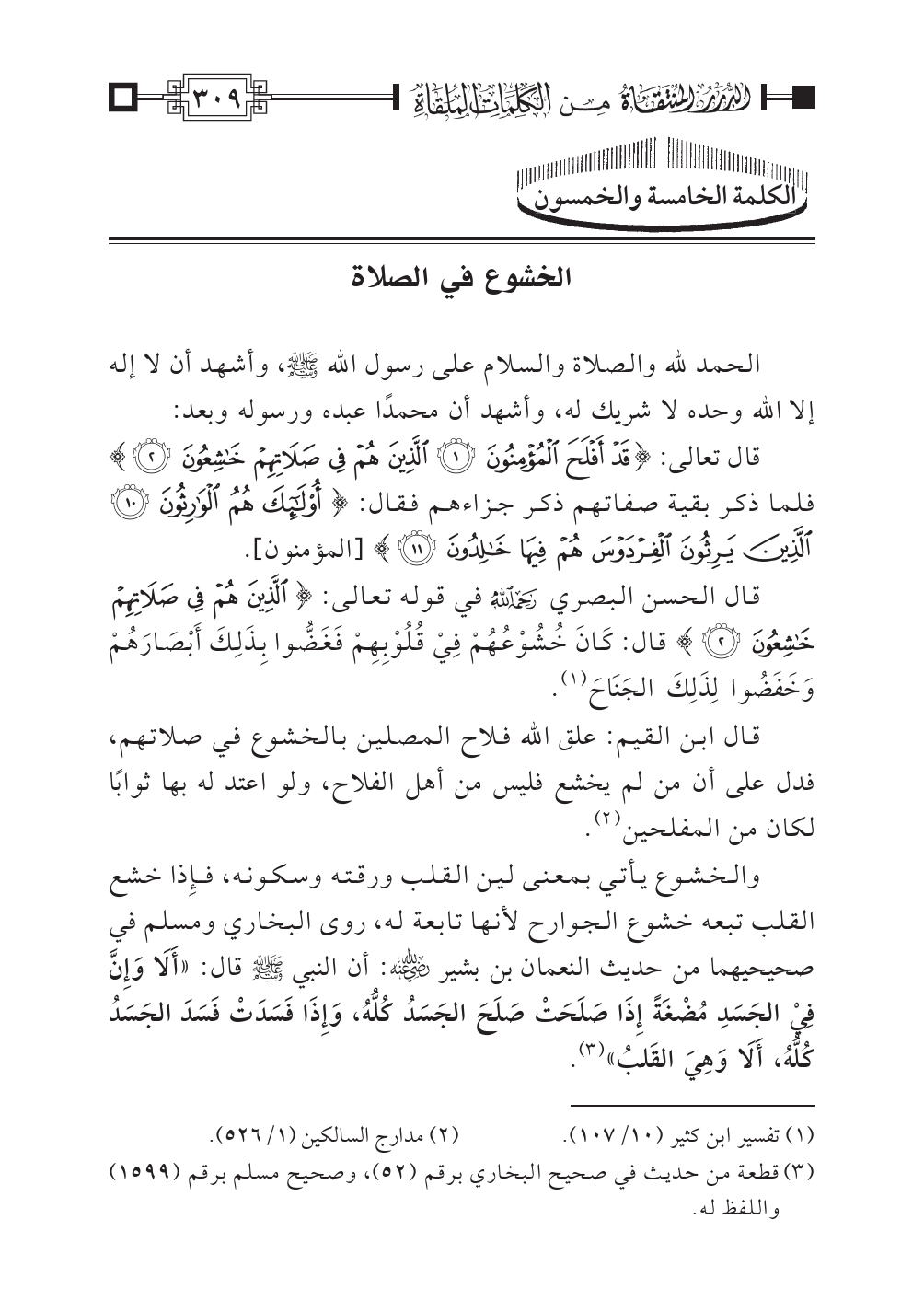 الكلمة الخامسة والخمسون: الخشوع في الصلاة