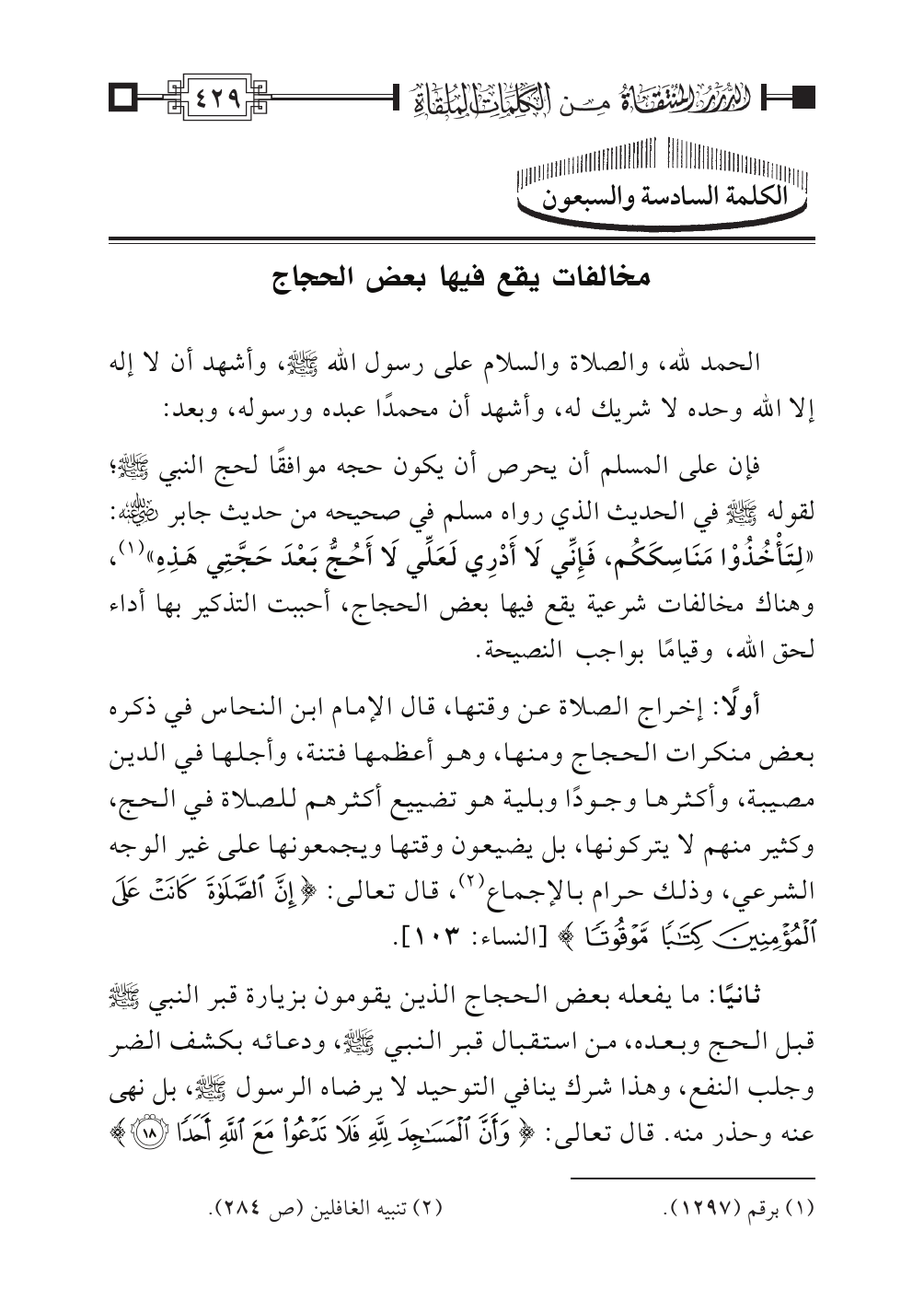 الكلمة السادسة والسبعون: مخالفات يقع فيها بعض الحجاج
