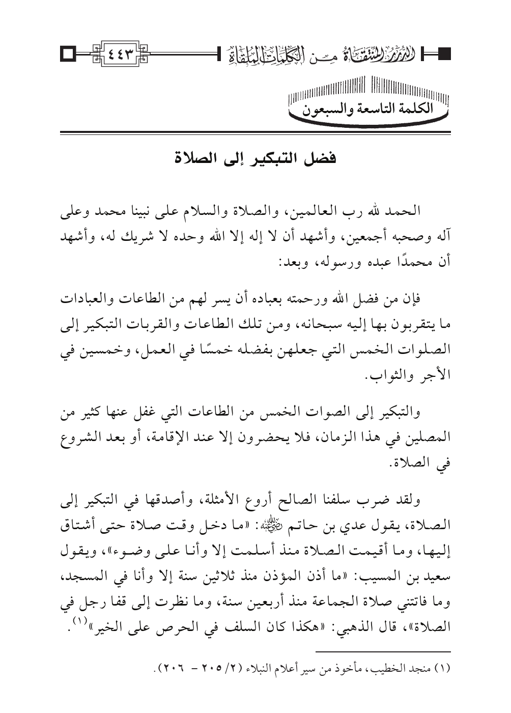 الكلمة التاسعة والسبعون: فضل التبكير إلى الصلاة