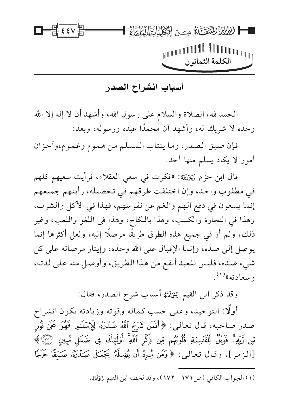 الكلمة الثمانون: أسباب انشراح الصدر