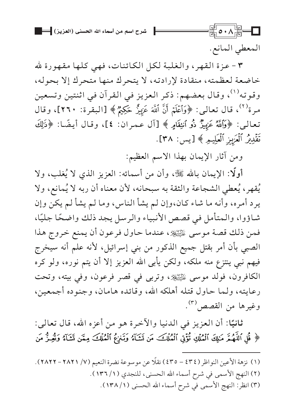 (¬٣) انظر: النهج الأسمى في شرح أسماء الله الحسنى (١/ ١٣٨).