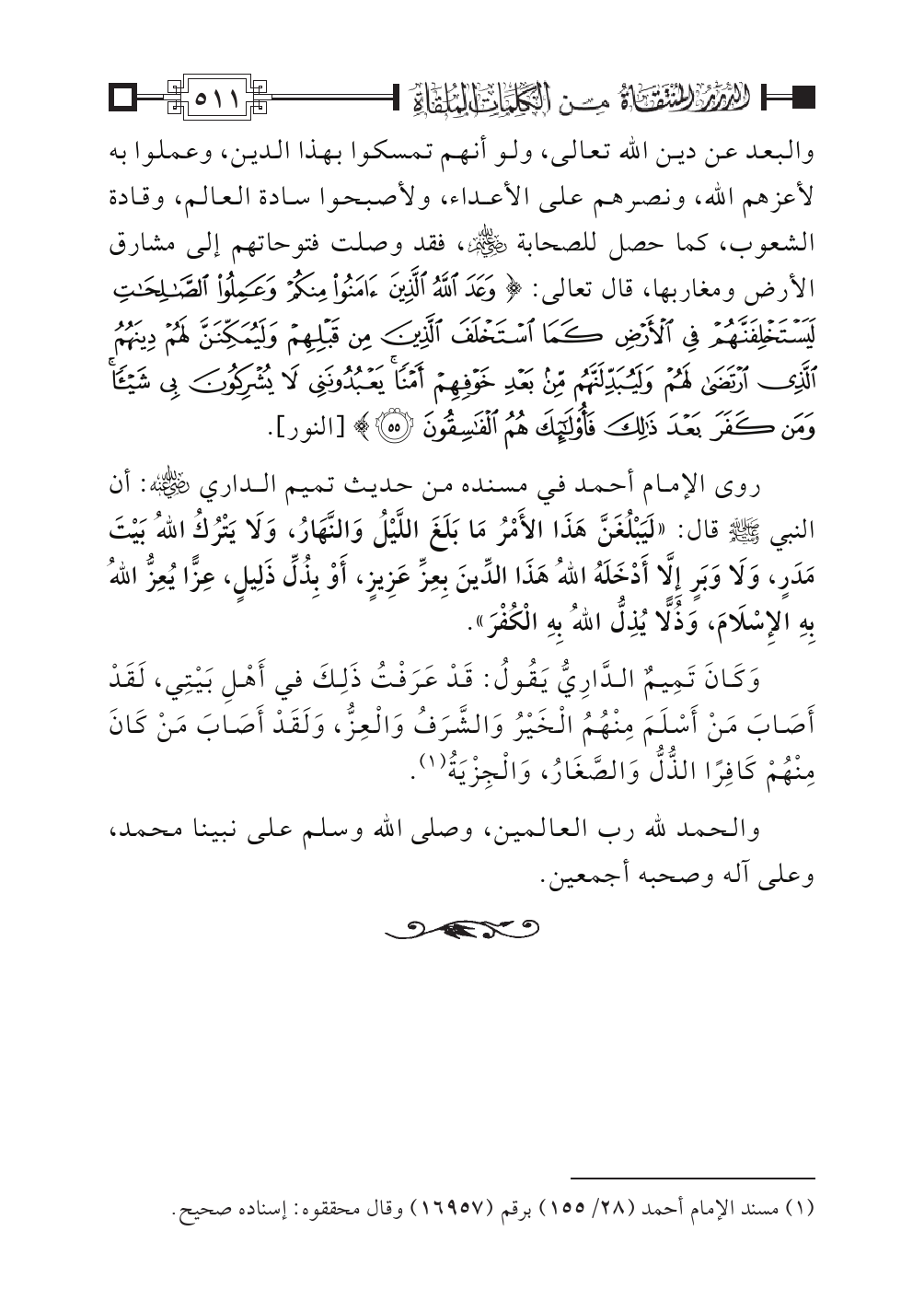 (¬١) مسند الإمام أحمد (٢٨/ ١٥٥) برقم (١٦٩٥٧) وقال محققوه: إسناده صحيح.