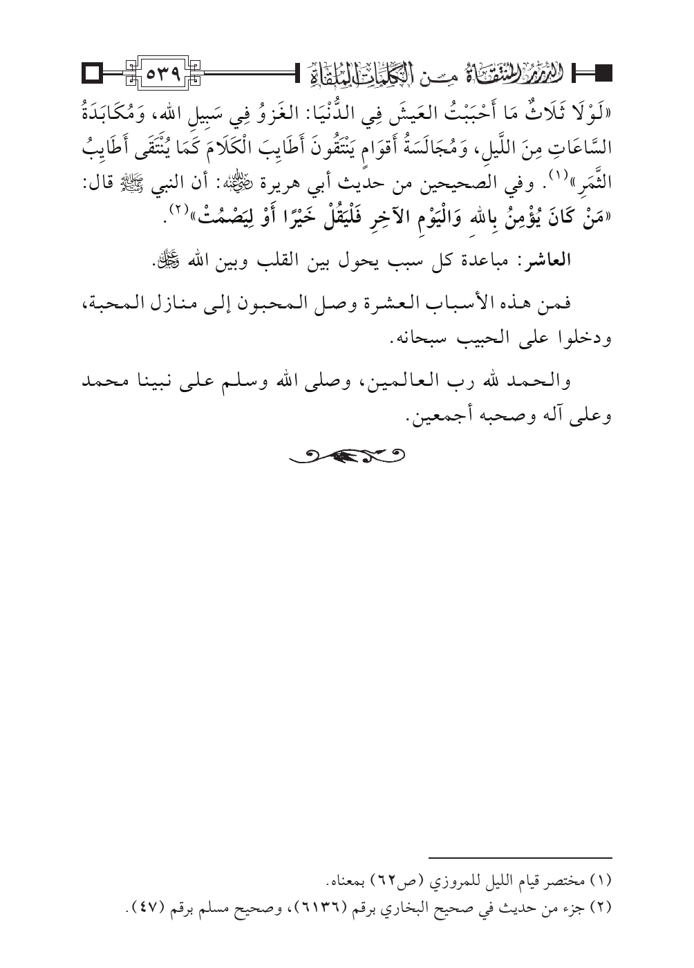 (¬٢) جزء من حديث في صحيح البخاري برقم (٦١٣٦)، وصحيح مسلم برقم (٤٧).