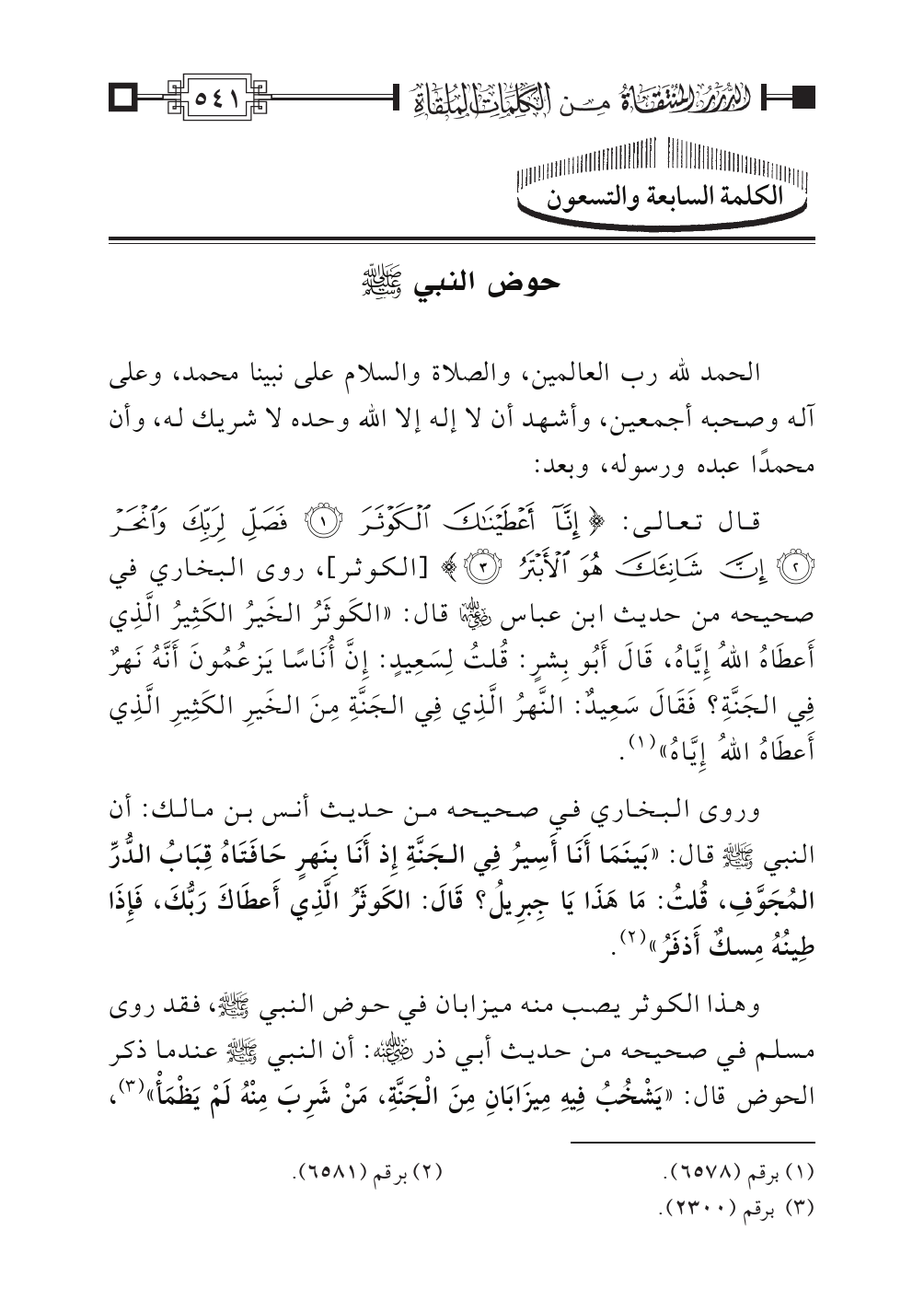 الكلمة السابعة والتسعون: حوض النبي - صلى الله عليه وسلم -
